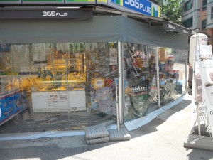 상가점포 먼지및 비,바람 차단 효과 : 접이식비닐커튼(pvc연질 투명 0.5t)