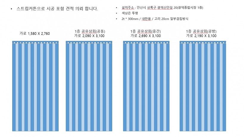 스트립커튼으로 시공 포함 견적 의뢰 페이지 정보 작성자 김세영 작성일20-12-15 10:28 조회2,632회 댓글0건 이전글 다음글 수정 삭제 목록 글쓰기 본문 핸드폰 010 - 8354 - 3427 이메일 ansanse@hanmail.net 댓글목록 등록된 댓글이 없습니다. 이전글 다음글 수정 삭제 목록 글쓰기