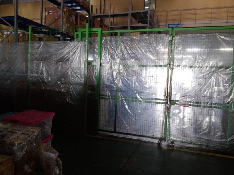 창고 시설물에 방풍비닐 설치건입니다.